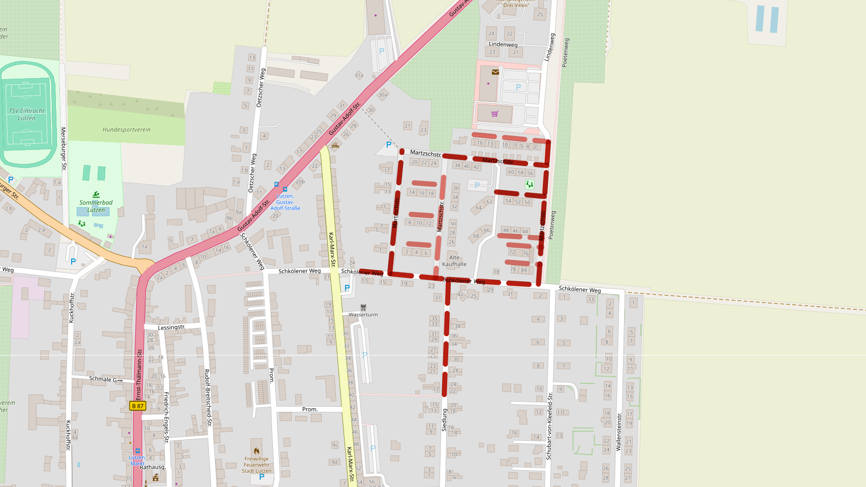 Halbseitige Sperrung der Straßen und Sperrung der Gehwege Schkölener Weg, Siedlung und Martzschstraße in Lützen