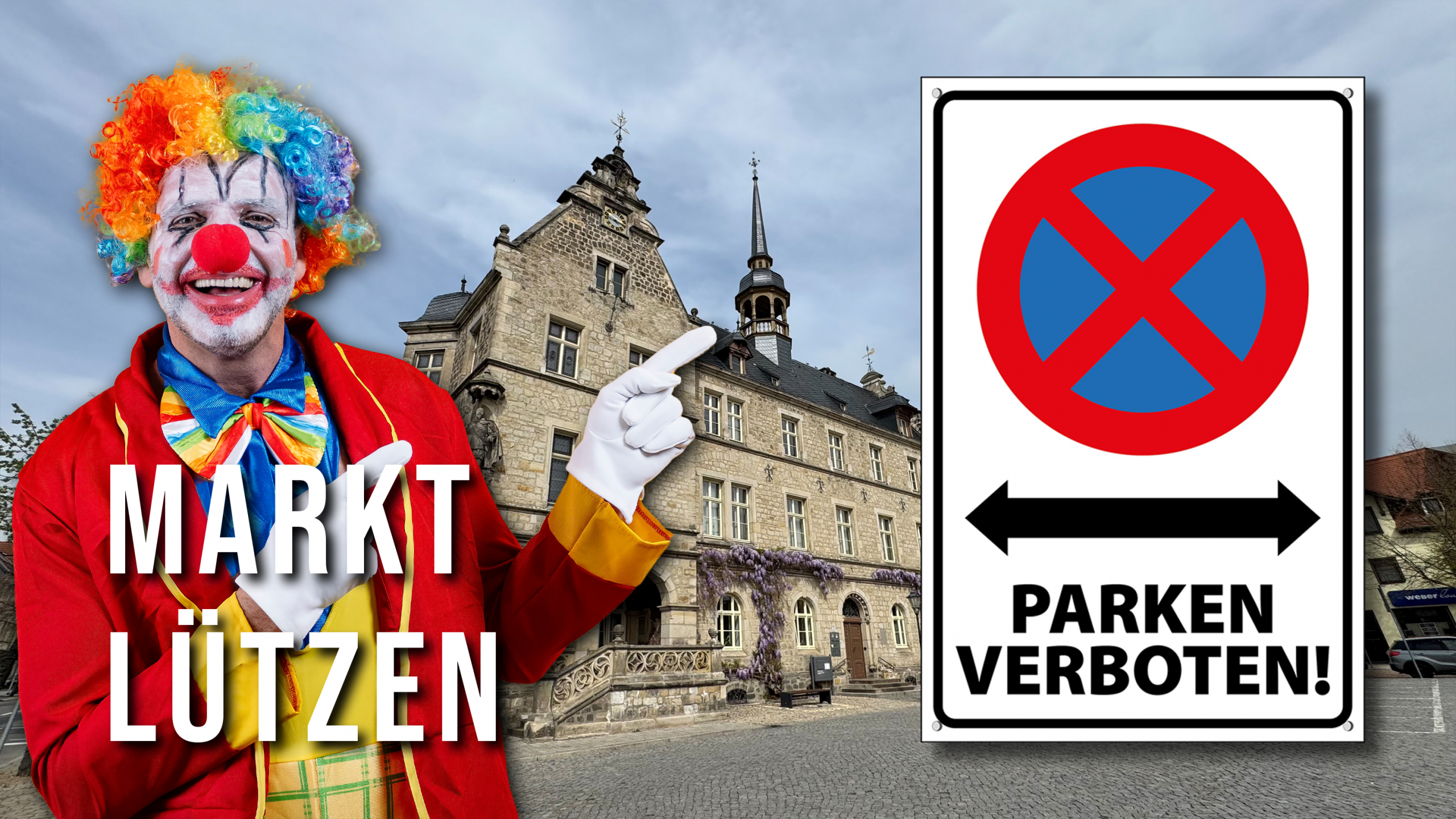 Nach dem Motto "Narren statt Karren" bittet die Stadt Lützen, geparkte Autos rechtzeitig wegzufahren.
