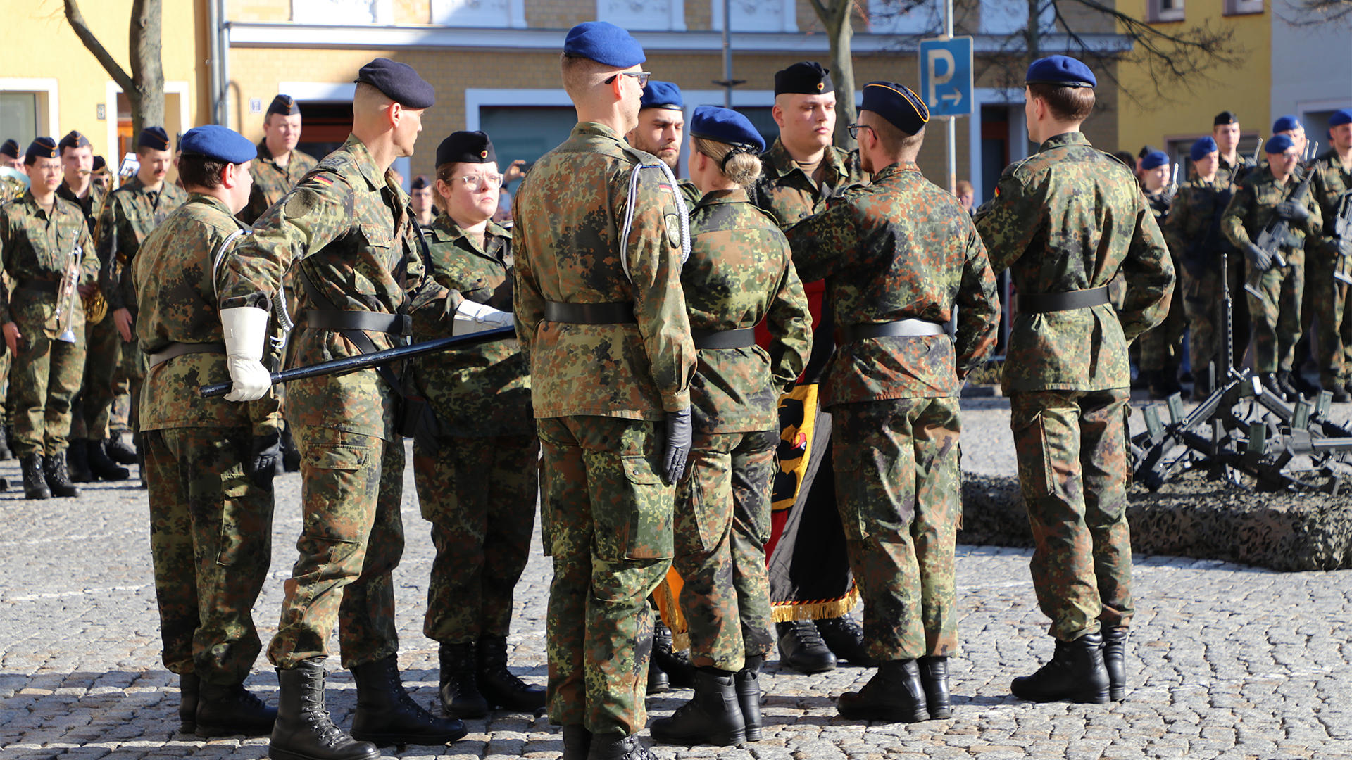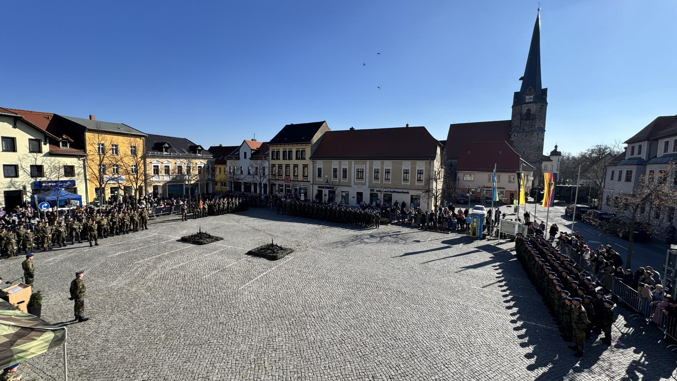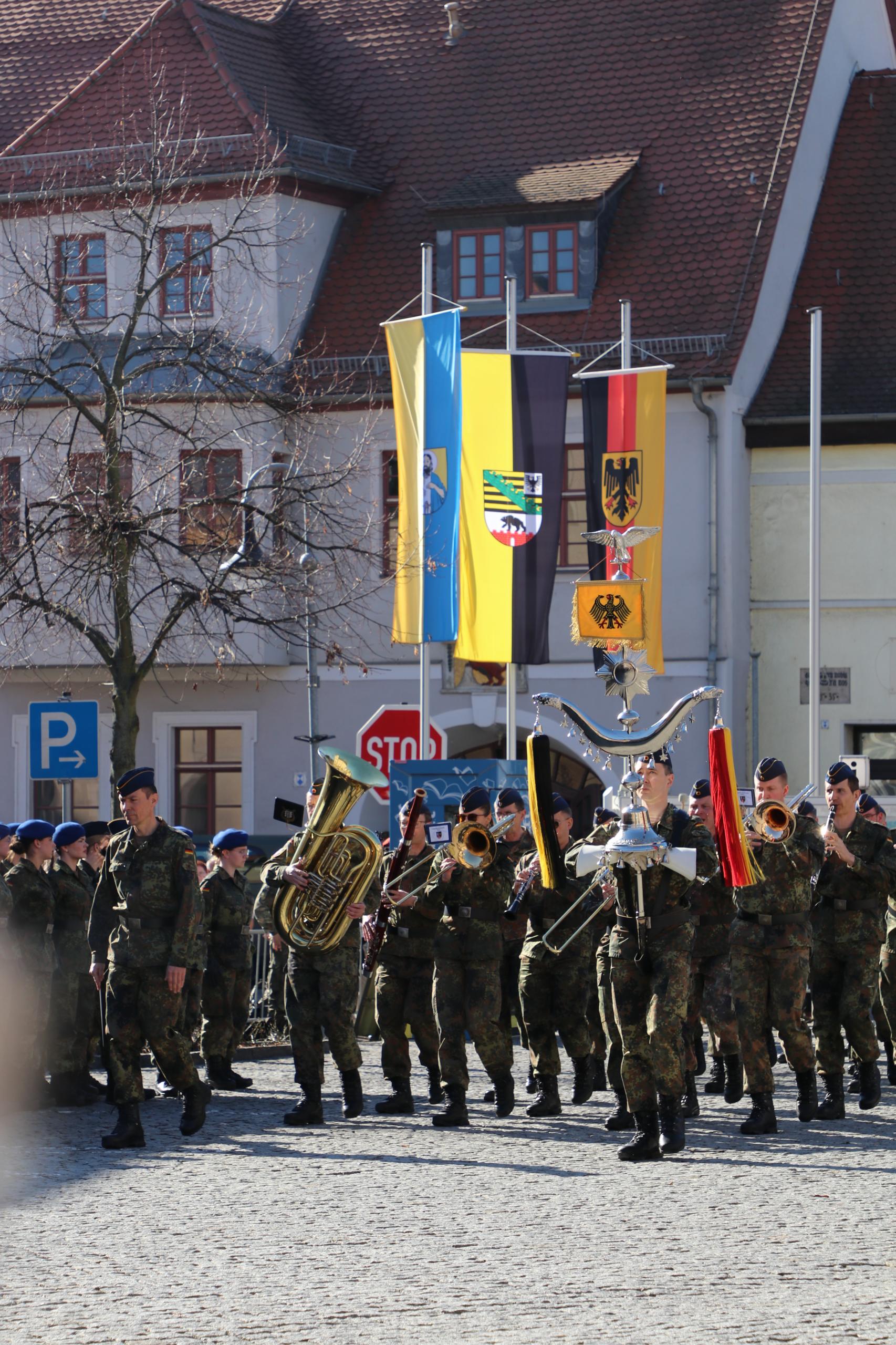 115 Rekrutinnen und Rekruten des Sanitätsregiments 1 aus Weißenfels haben am Donnerstag auf dem Marktplatz in Lützen feierlich ihren Eid abgelegt.