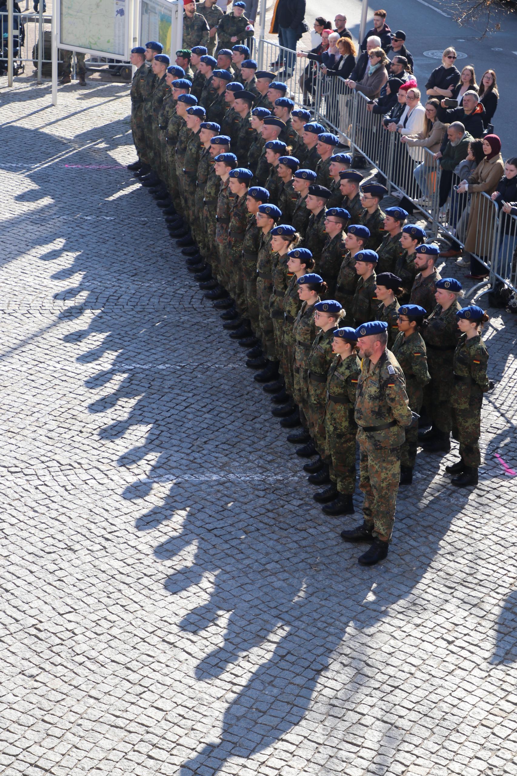 In der Zeremonie gelobten die jungen Soldatinnen und Soldaten, der Bundesrepublik Deutschland treu zu dienen sowie Recht und Freiheit des deutschen Volkes mutig zu verteidigen.