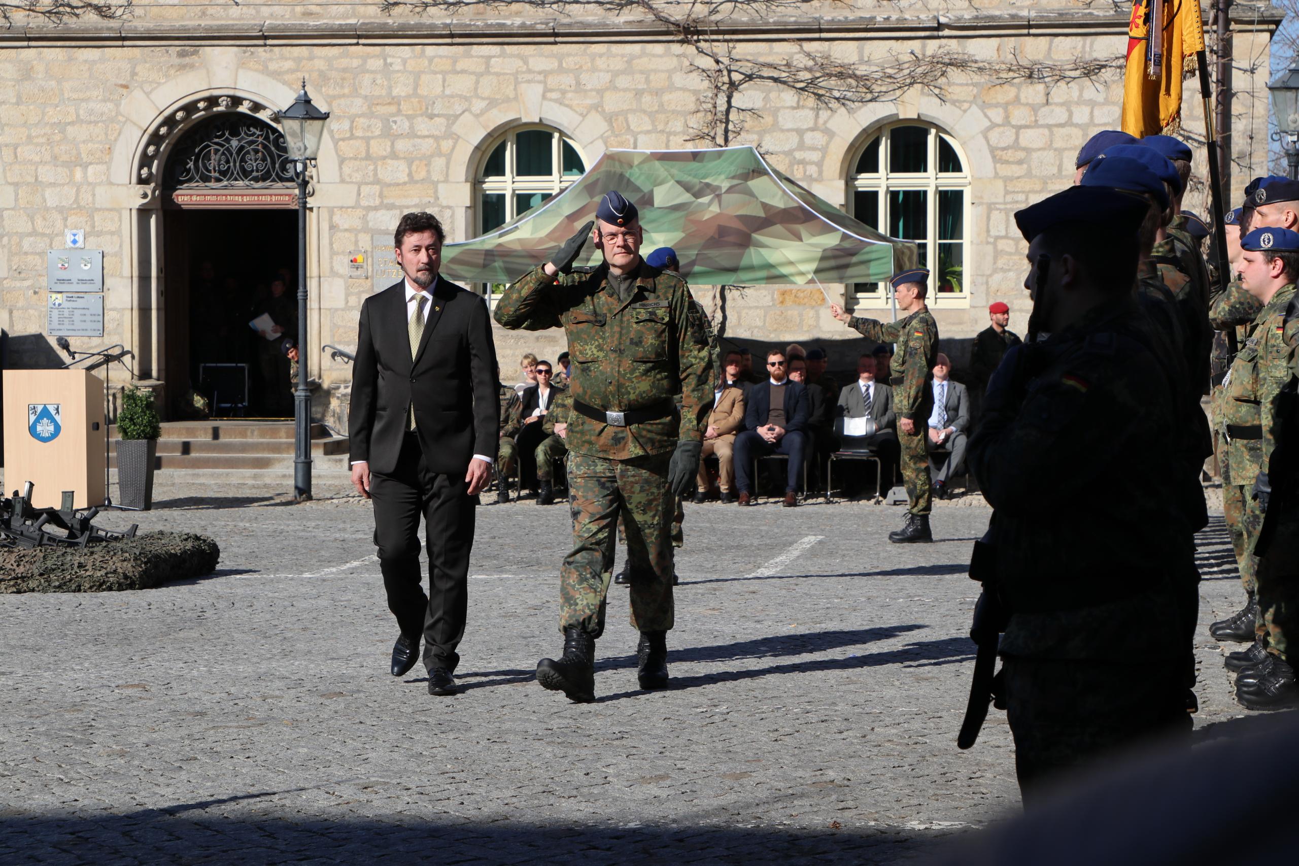 In seiner Ansprache zollte Bürgermeister Mirko Kother (parteilos) den Rekrutinnen und Rekruten großen Respekt für ihre Entscheidung, den Dienst bei der Bundeswehr anzutreten. Zugleich erinnerte er an die historische Bedeutung Lützens als Schauplatz wichtiger militärischer Ereignisse. Gerade deshalb sei die Stadt ein passender Ort für das Versprechen, sich für Frieden und Freiheit einzusetzen.