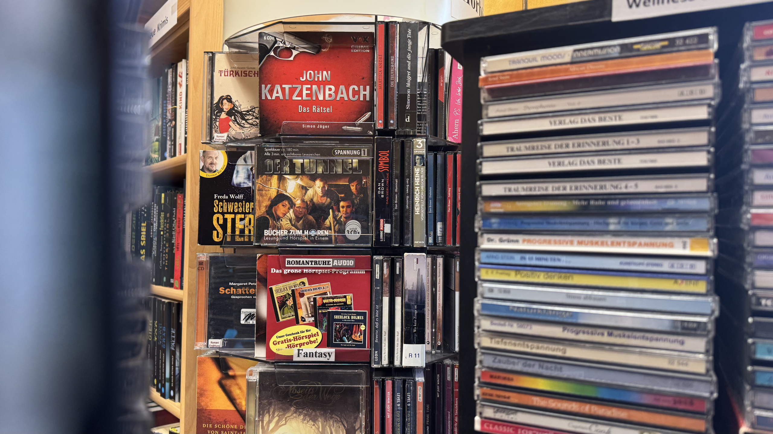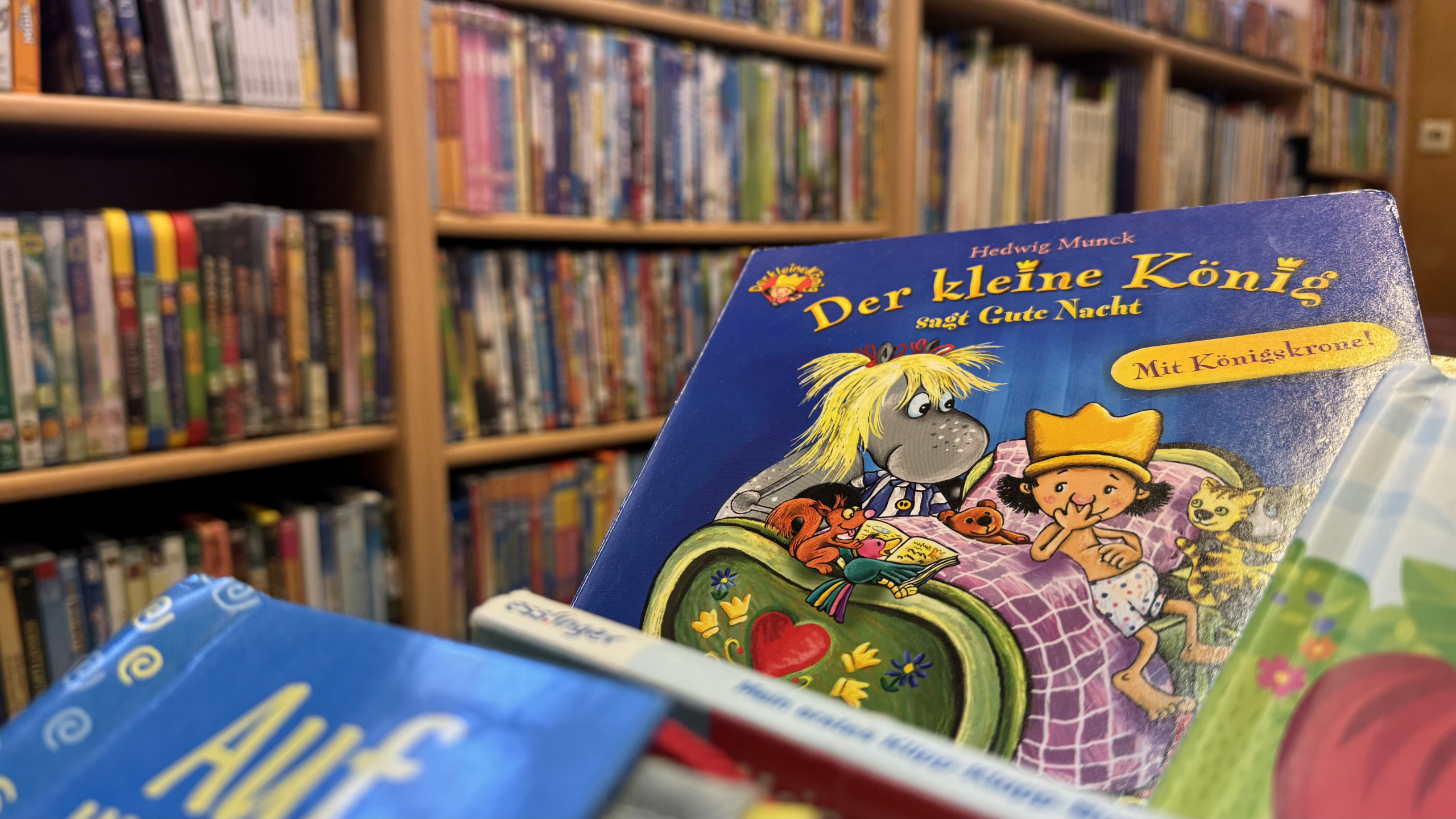 Im Bestand der Bibliothek befinden sich rund 10.000 Medien. Neben Büchern und Zeitschriften gehören auch 800 DVDs, 1.300 CDs, Hörbücher für Erwachsene und Kinder, Computerspiele, Puzzles, drei Kamishibai-Theater mit 43 verschiedenen Bildkartensets und 100 "Tonies" dazu.