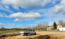 Im Außenbereich der Einrichtung wird seit kurzem wieder voll gearbeitet um über den Sommer das ellipsenförmige Gebäude in eine kindgerechte Anlage einzubetten. Der Stauraumkanal, der sich unter dem zukünftigen Parkplatz befindet, wurde bereits fertiggestellt.