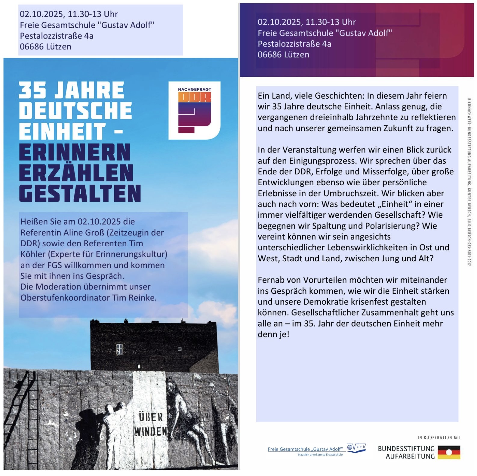 35 Jahre Deutsche Einheit - Erinnern, Erzählen, Gestalten