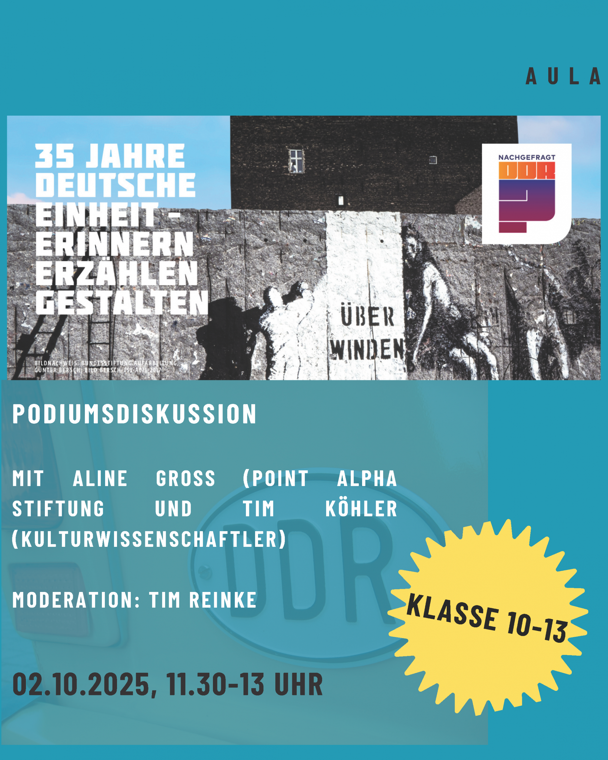 mit Referentin Aline Groß (Zeitzeugin der DDR) sowie den Referenten Tim Köhler (Experte für Erinnerungskultur)