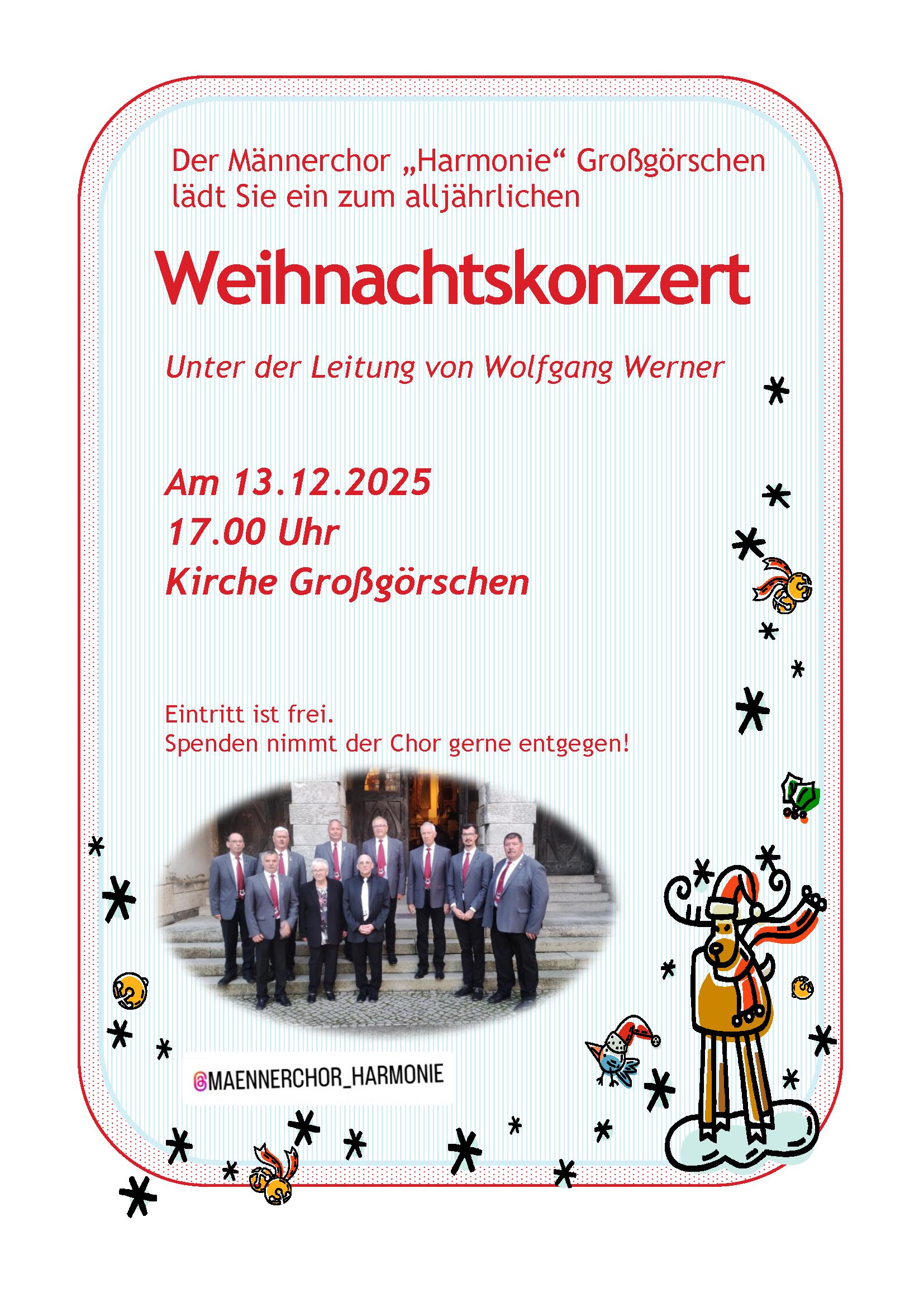 Der Männerchor „Harmonie“ Großgörschen lädt Sie ein zum alljährlichen Weihnachtskonzert
