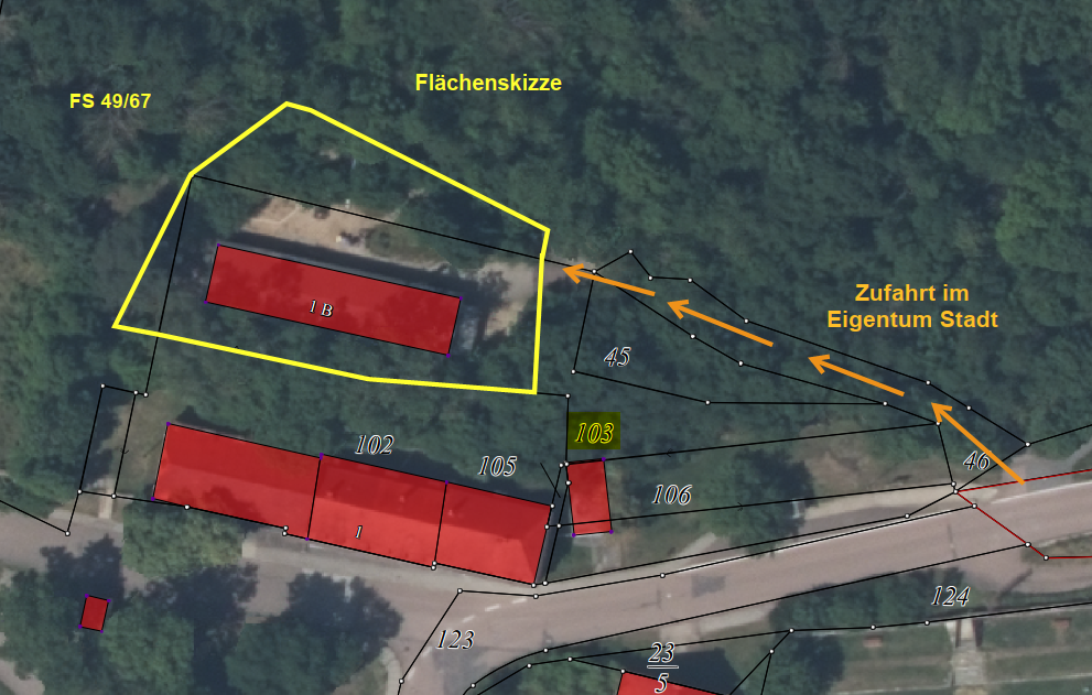 Es handelt sich um ein unvermessenes Grundstück. Eine amtliche Zerlegungsvermessung wird im Zuge des Verkaufs vollzogen. Die Kosten für die Vermessung trägt die Stadt Lützen.